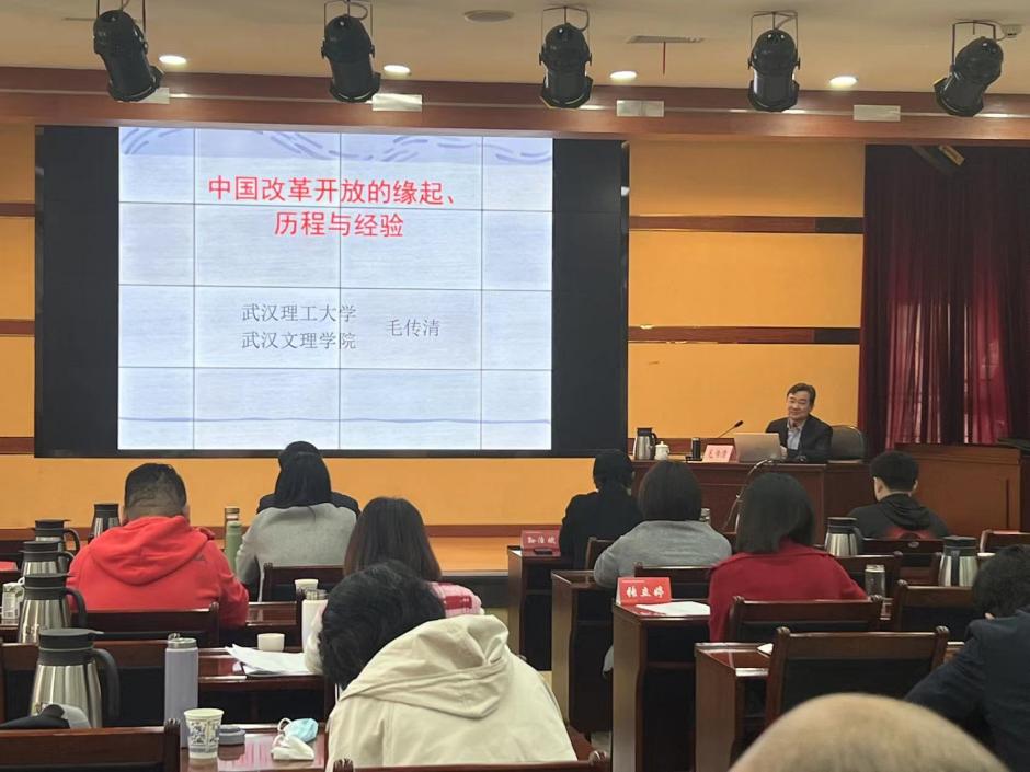 2023年3月10 日上午,公司太阳成tyc122cc经理、武汉理工大学毛传清教授应邀为2023年全省民主党派中青年骨干培训班授课。毛经理以“中国改革开放的缘起、历程与经验”为题,深入讲述了改革开放的历史前提和蕴酿探索、发展历程和基本特征、巨大成就和根本原因、伟大意义和基本经验,毛经理的讲课深入浅出,生动活泼,理论联系实际,材料数据丰富,既有思想高度和理论深度,又有很强的针对性和感染力,受到民主党派中青年骨干培训班学员的欢迎和承办方湖北省社会主义公司领导的高度评价。