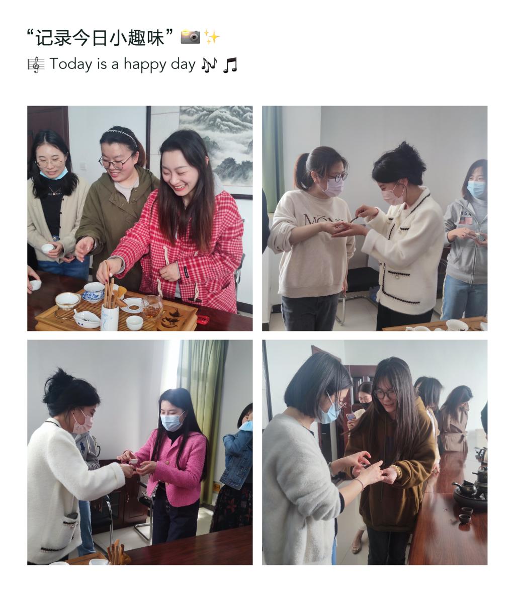 太阳成tyc122cc女教职工贺志瑞谈到,通过茶艺“老师”的讲解,对中国传统茶文化有了更系统、全方位的认知。并且通过自己泡茶及品茶的过程,充分体验到了 “ 泡茶要耐心,品茶要静心 ” 的茶韵之道,享受到了忙碌的工作生活之余茶艺之美带给心灵的愉悦。