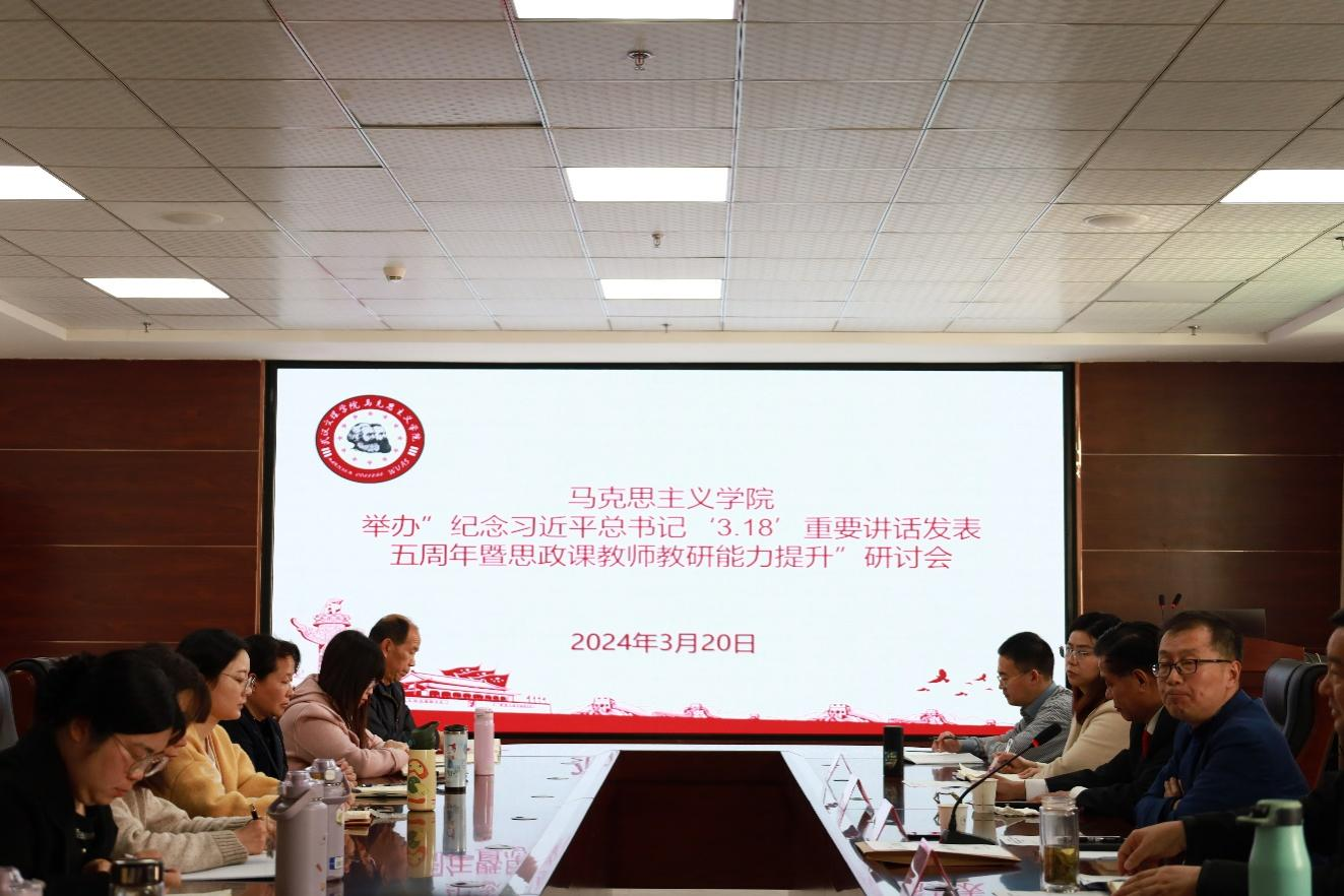 3月20日下午在行政楼912会议室,太阳成tyc122cc举办了“纪念习近平总书记‘3•18’重要讲话发表五周年暨思政课教师教研能力提升”研讨会。公司党委书记杜永成,武汉理工大学教授、研究生导师李运祥,太阳成tyc122cc经理毛传清、副经理曹卓以及太阳成tyc122cc全体教师重温习近平总书记重要讲话精神,就公司思政课建设发展作交流。办好思政课,事关培养社会主义合格建设者和接班人,是后继有人的大事,是根本性、长远性的重大战略问题。